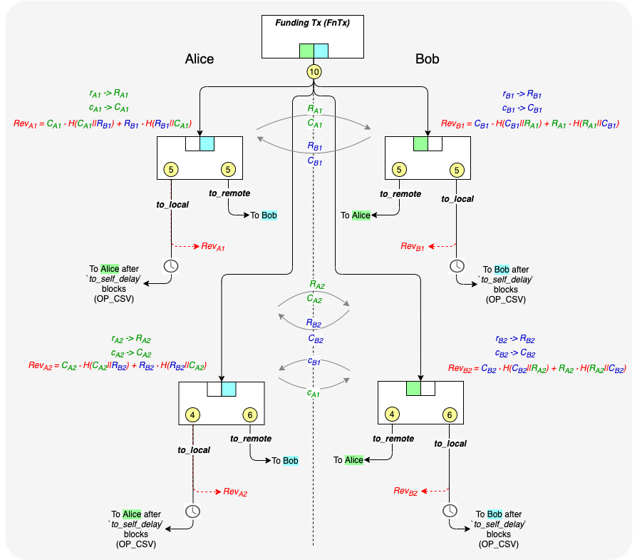 to_local_outputoutput has a spending path that is immediately spendable by Bob if he has the private ketdA1. - If Alice and Bob agree to update their channel state, then the private keys for the previous state will be swapped (ie: Alice will send Bob