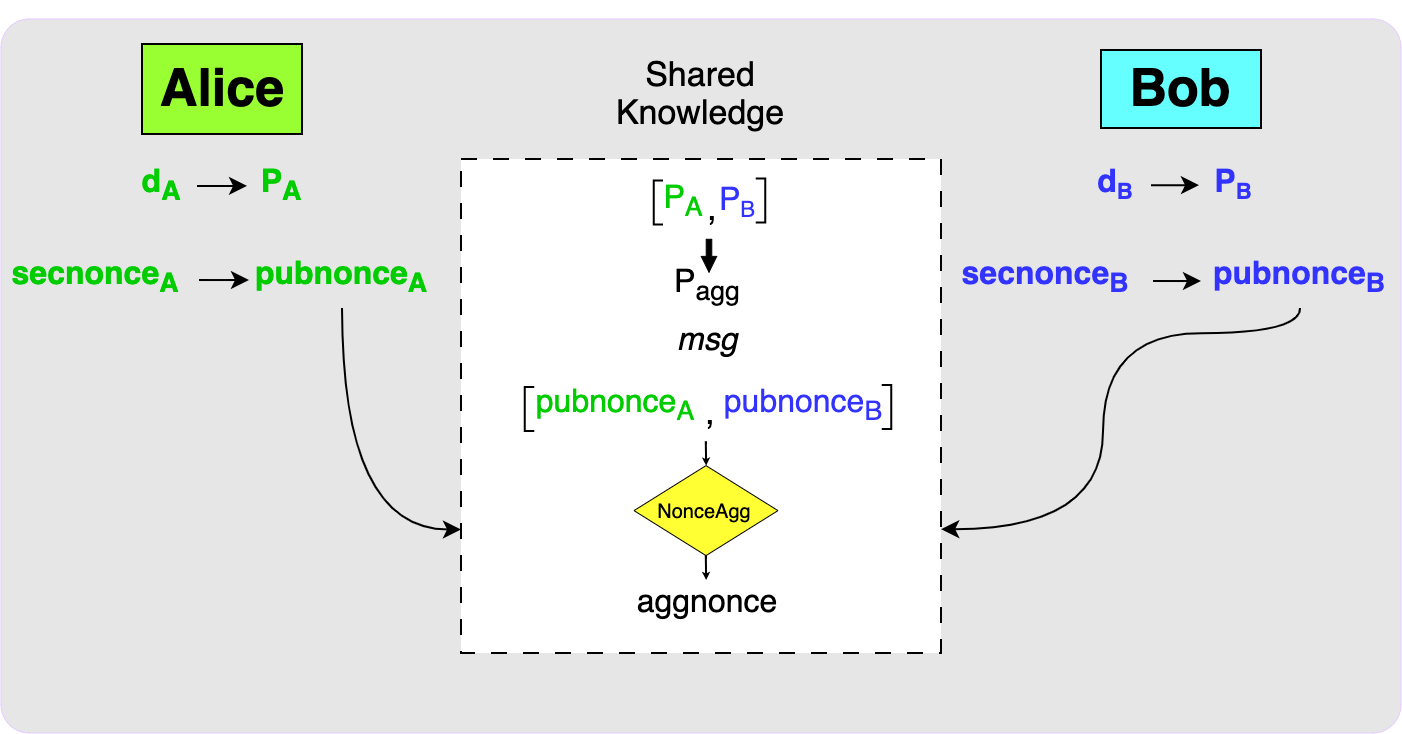 each generate a secret nonce, called the secnonce, and from the secnonce the